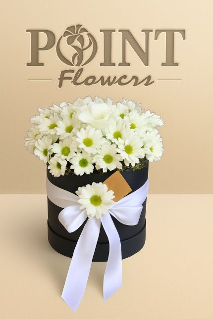 Buca Çiçekçi Siyah Silindir Kutuda Papatyalar ve Orkide ARJ0025